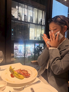 こんばんはー! 今日21:00います☝🏻✨ 待ってます〜^_^ 昨日の続きで思い出書く📝 物破壊して新大久保でご飯食べて 銀座でコース料理食べてきたよ👐🏻👐🏻 コース料理好きでしがちなんだよねー! いつも自分じゃ選ぶものって偏るから 食べないものとかあるからと思って たまにコースすると楽しい🥹💝 コース内容で変わるんだけど ここは前菜 前温菜 メイン デザートを選べる! 美味しかったよ〜!!!! そのお店ならではとかを知ると嬉しい😆 コース料理の時のワインも美味しいよね🤤 そりゃ高い金額出したら食材も良くなるから美味しいに決まってるんだけど 料理の仕方をこの金額以上に感じた!!と 思う瞬間が好きで美味しいところ巡りが 最近生きてて楽しいこと💞🫶🏻 お店の名前は 銀座オザミデヴァン本店🙂↕️✨ 一階にもあって一階はもっとカジュアルで 入りやすい感じだったよ💭 二階の本店はコースがメイン✨✨ ぜひ行ってみてね🫧 夜景も見に行ったんだ〜^_^ DJの人いた^_^! 東急銀座の屋上☝🏻 綺麗だったしゆっくりできてよかったよー! 普段田舎の景色を見てるから新鮮👐🏻👐🏻 とても楽しかったおやすみでした^_^ 爆飲みも楽しいけど これもこれでいい^_^ おやすみ沢山遊んだから頑張らないと^_^ 次は土曜彼シャツイベント‼️^_^ いるので待ってるね🙂↕️💓 では!