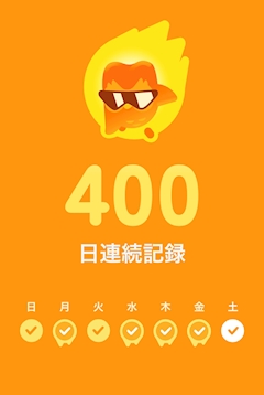 やっほー!❤︎ みなみです☝️❤︎ 私の毎日の日課 Duolingo ついに 400日連続記録 達成しました💡❤︎ 継続は力なり 英語が理解できるようになりたいなあ と思って始めた 英語学習☝️✨ こんなに続くと 思ってなかった😗❤︎ いつか英語圏の国に 旅行いってみたいなあと夢見てる🛌❤︎笑 本日おやすみです❕ 風邪引いてます 季節の変わり目 みなさんも体調には 気をつけてくださいね🥹 では👋❤︎ 🩵