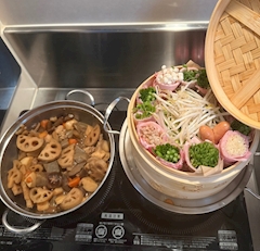 なこんばんは!!!!! ゆりあです^_^ 今日21:00-います🙂↕️⭐️ なんかあんまご飯作らないんですけど、 友達に食べたい‼️って言われたり 今はお姉ちゃんと住んでるので一緒に食べる時 作りたいマインドの時に作ったりするんですけど まあ鍋が楽だから鍋やりがちですよね^_^ 昨日はみぞれ鍋を姉と^_^ 大根のミルフィーユ鍋にしたけど 結構切り幅バラバラなので写真は載せず^_^ 蒸籠蒸し買って感動で作った野菜巻きと筑前煮 大晦日友達と贅沢海鮮レモン鍋パ お弁当 もっとあるんですけど、やっぱ共に食べてくれる人がいなくなると 外食が多くなるし一人だとご飯だるくて 作らなくなっちゃう^_^ 一昨年くらいはめちゃ作ってたけどなあとふと ハンバーグとか鮭のホイル焼きとか オムライスやりがちだったなあと^_^ 別に作るのは上手くないんですけど、 冷蔵庫であるもので作ったりするのとか 一週間で考えて出費抑えるのが得意だった🤣🤣 今年はまた自炊しよう🙂↕️💞💞☝️ 私の料理話にお付き合いいただき ありがとうございます🤣⭐️ 今日も寒いけどがんばろーーーーうう 待ってます(^_^)v ばーい!